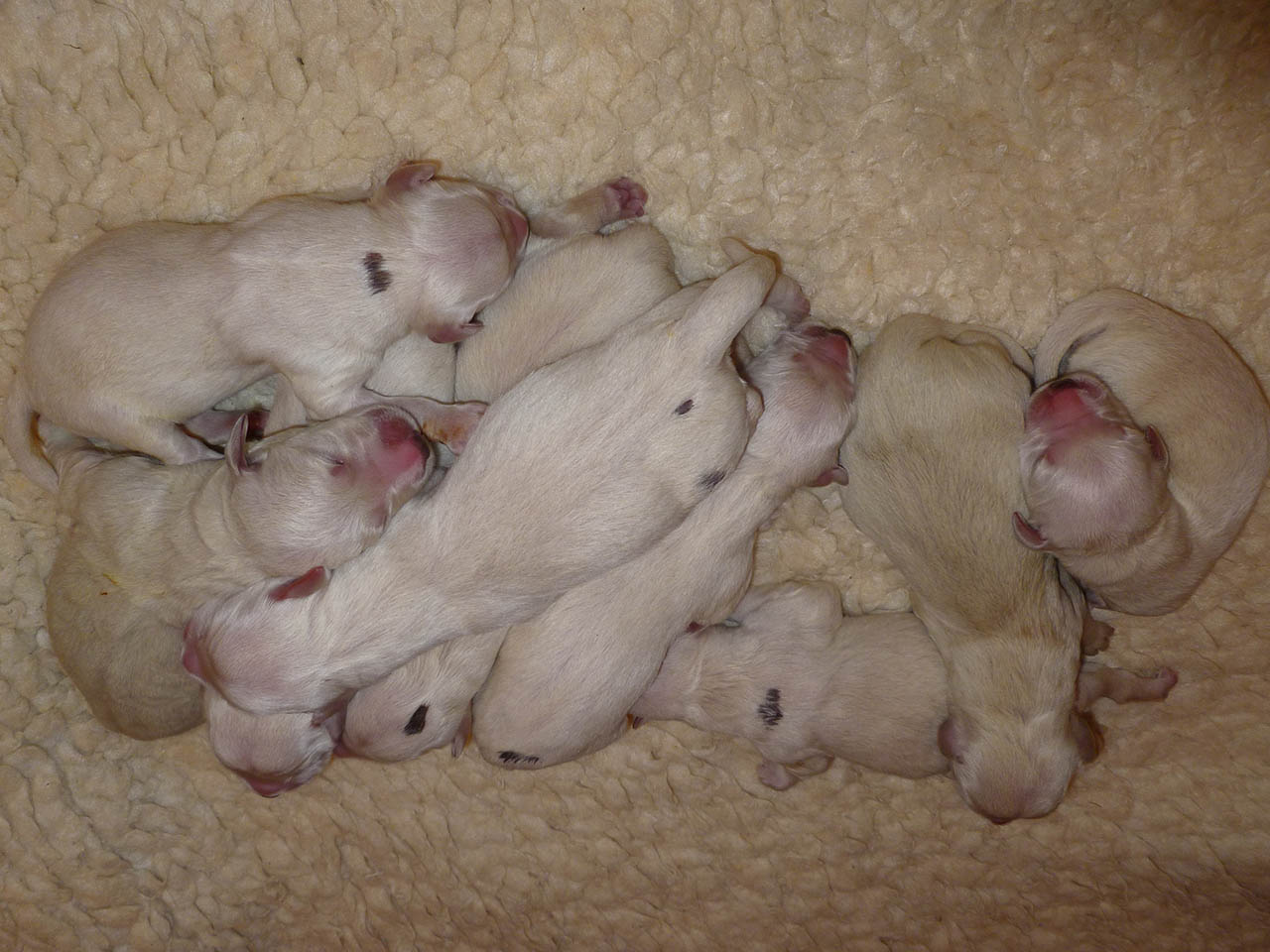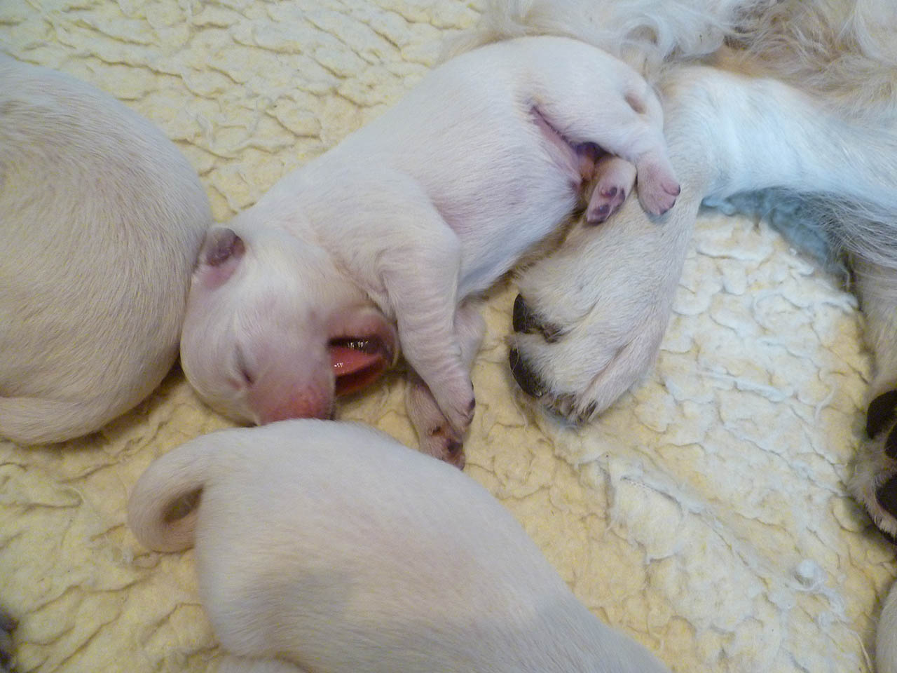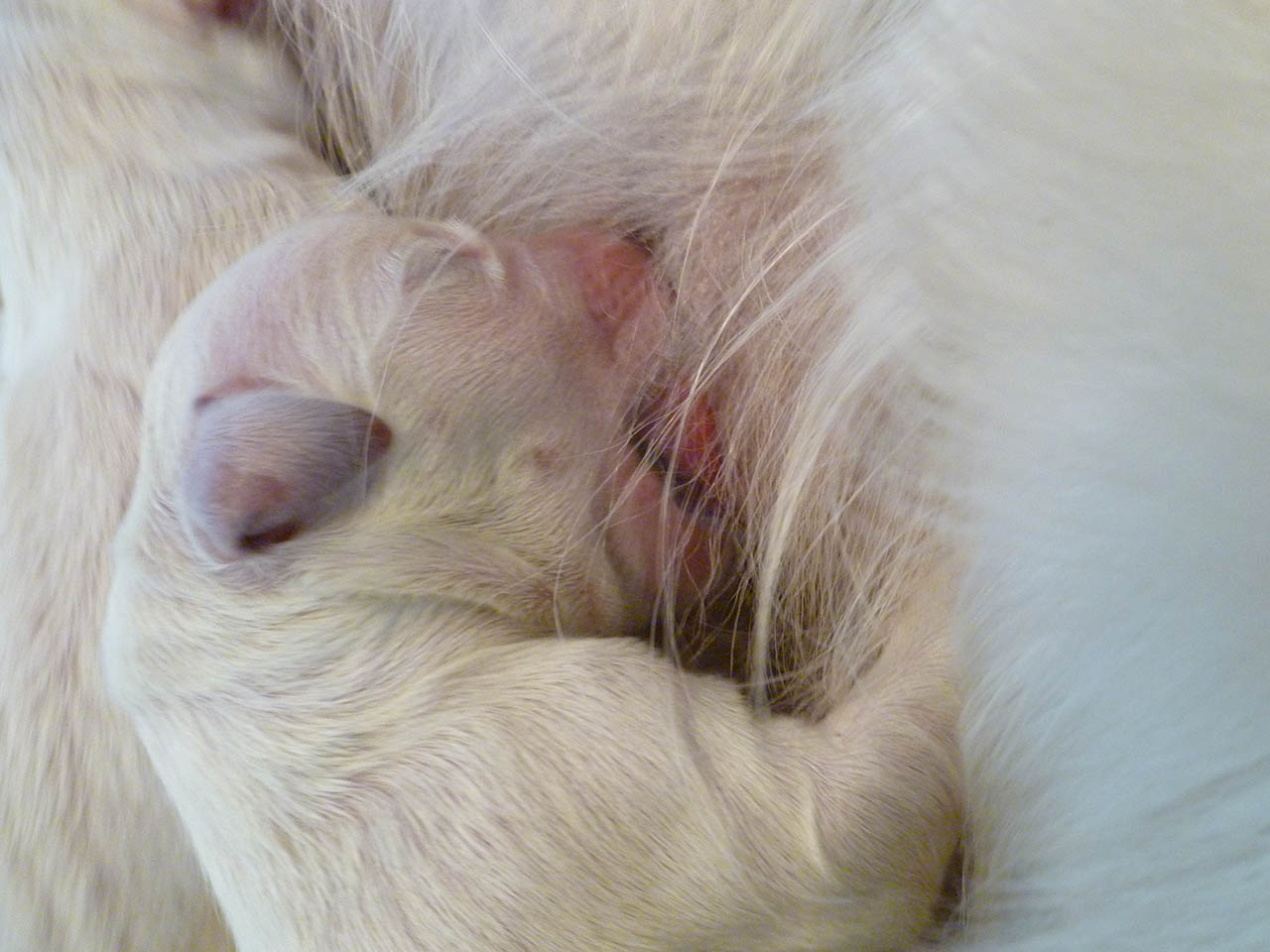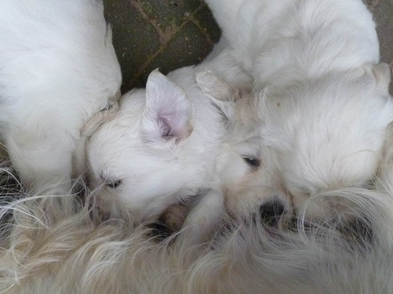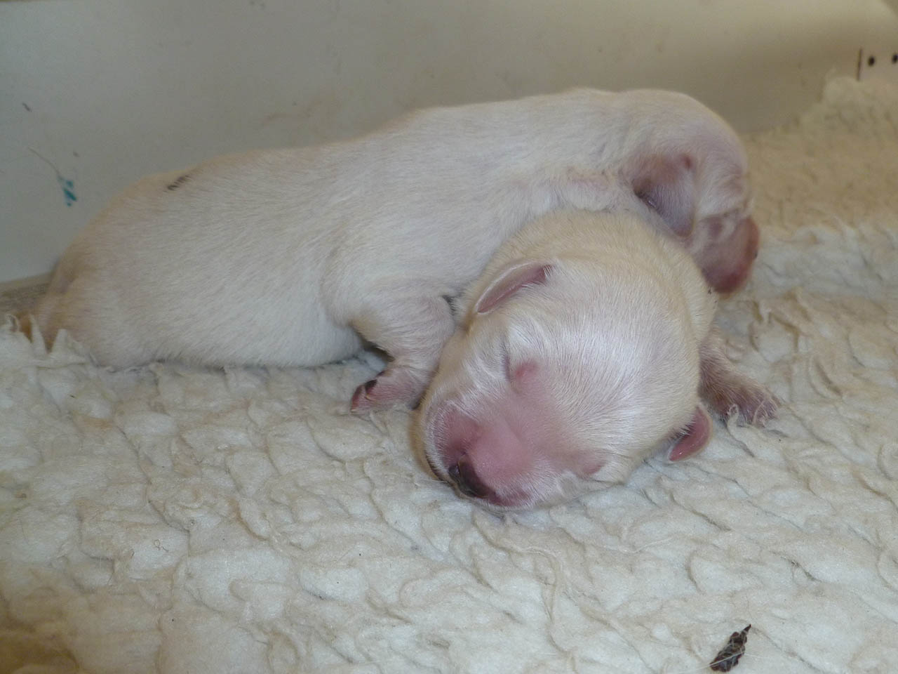 De eerste foto's van de pups, ze zijn net een dag oud.