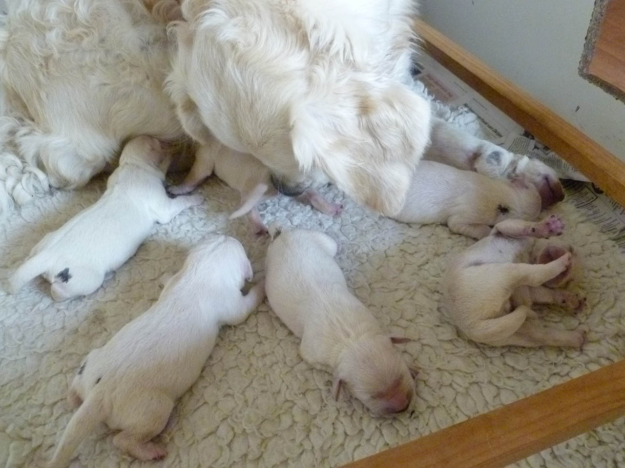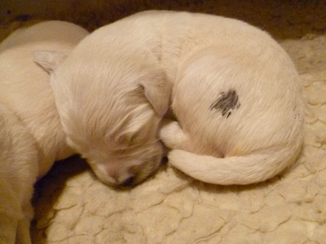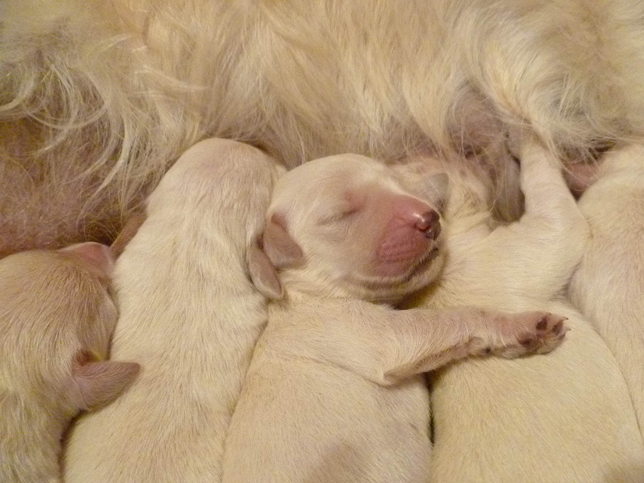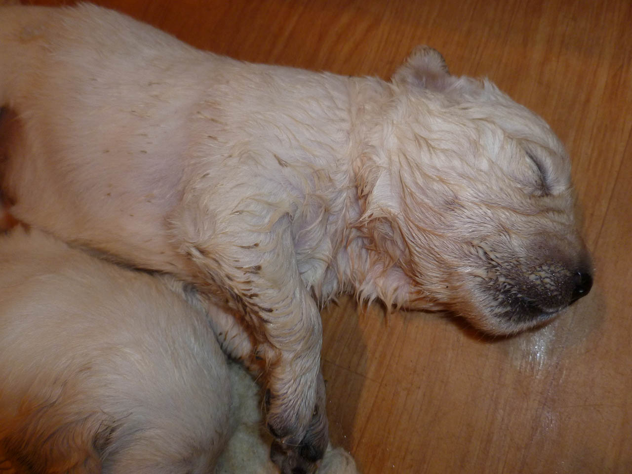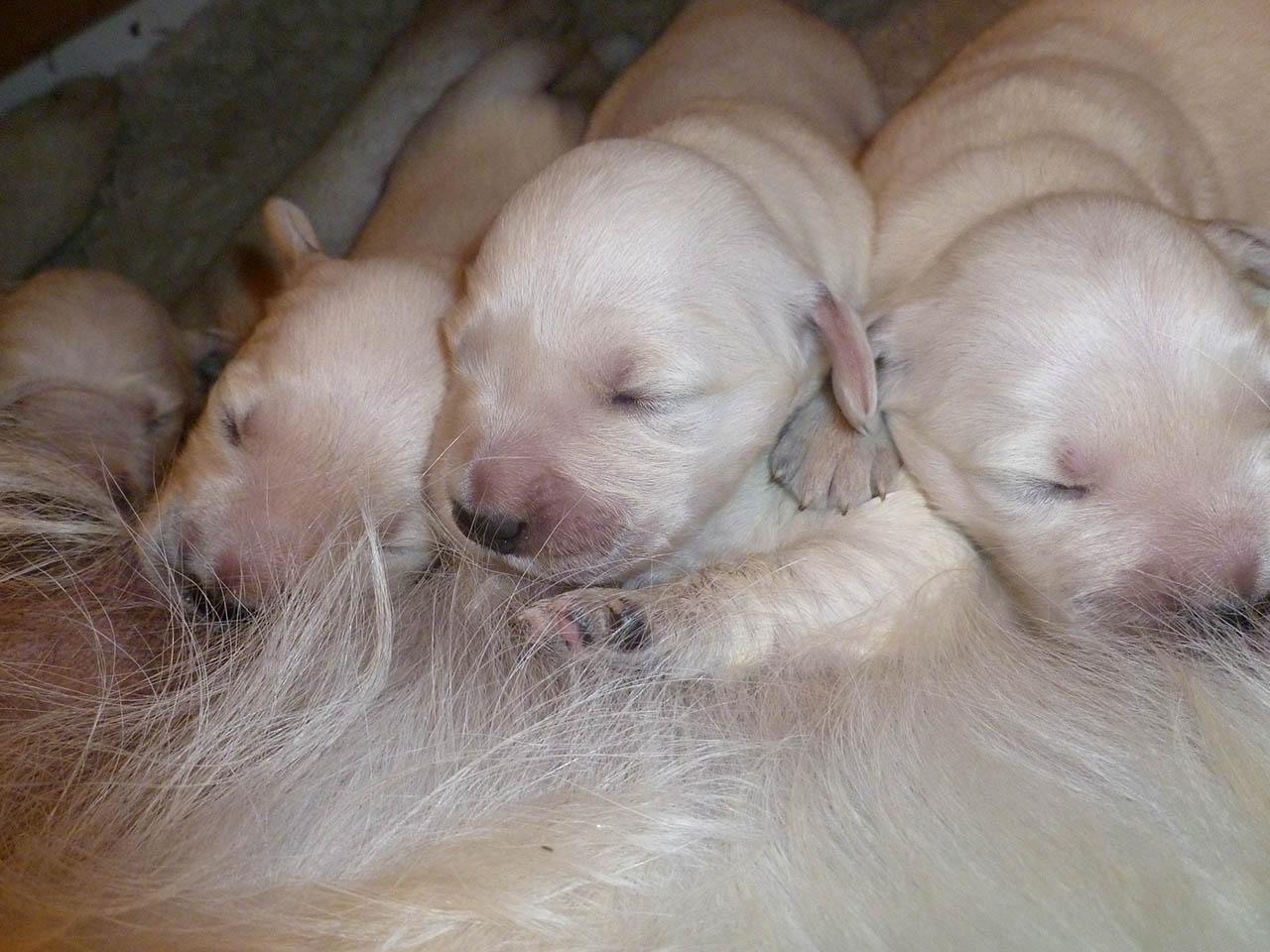 De eerste foto's van de pups, ze zijn net een dag oud.
