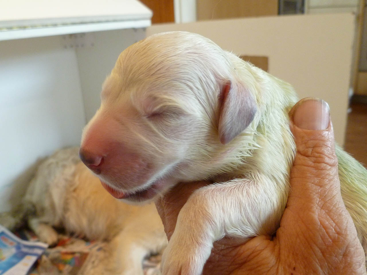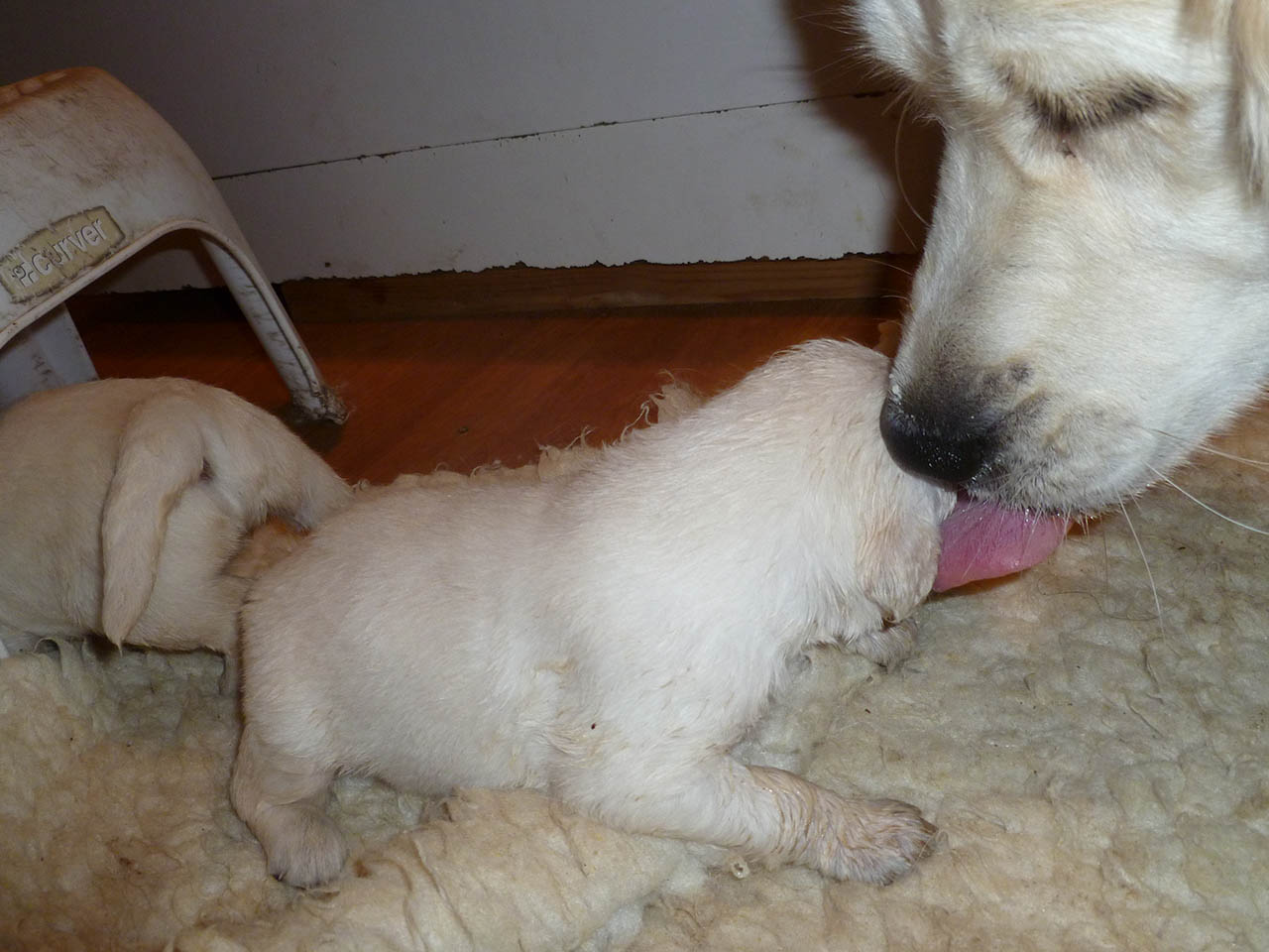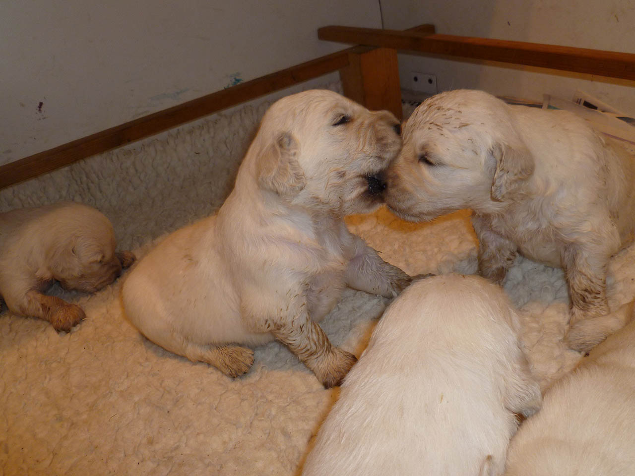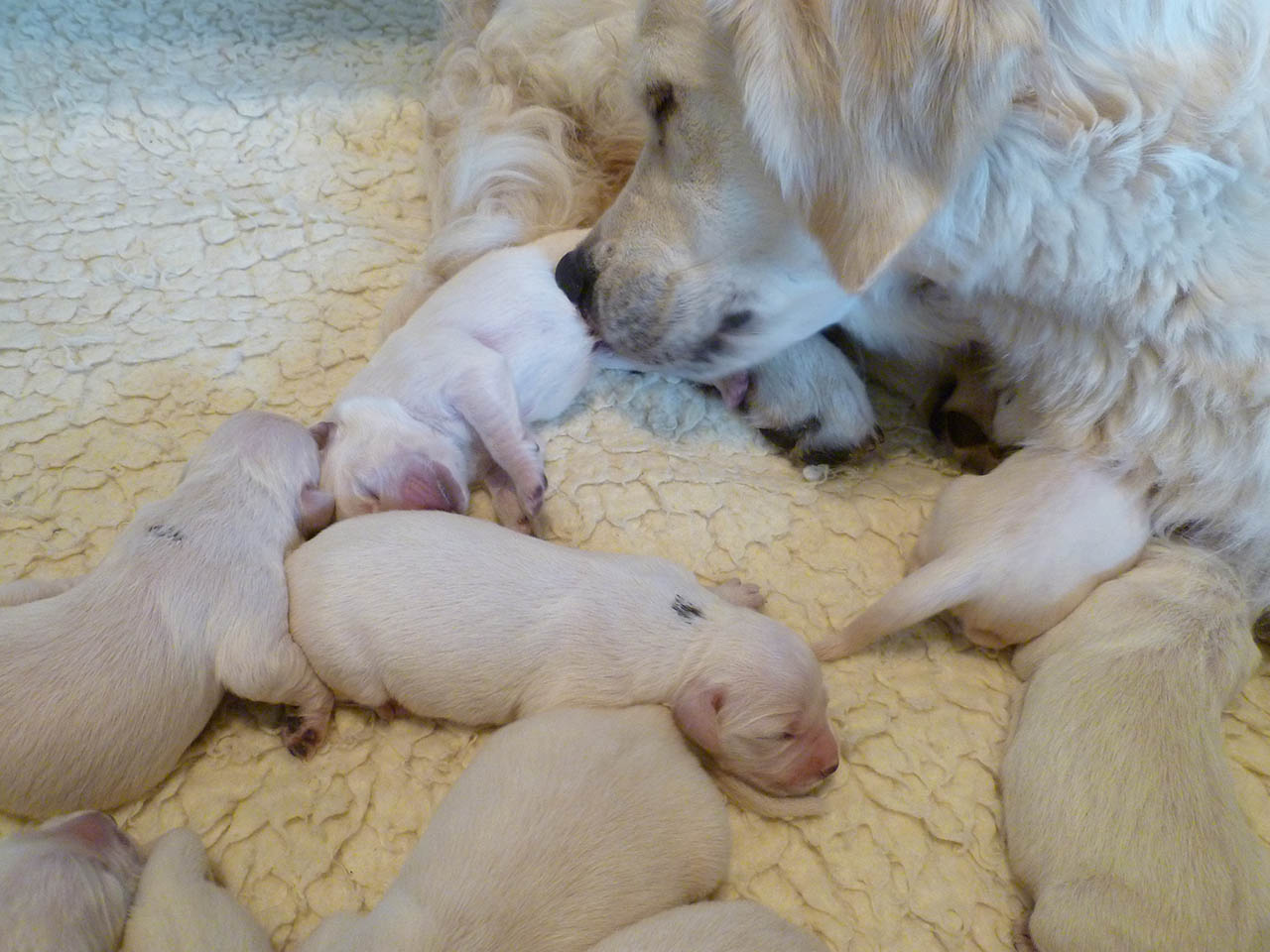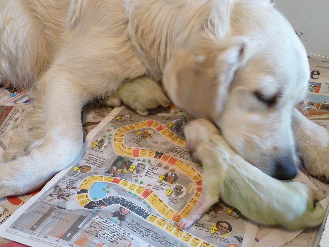 De eerste foto's van de pups, ze zijn net een dag oud.