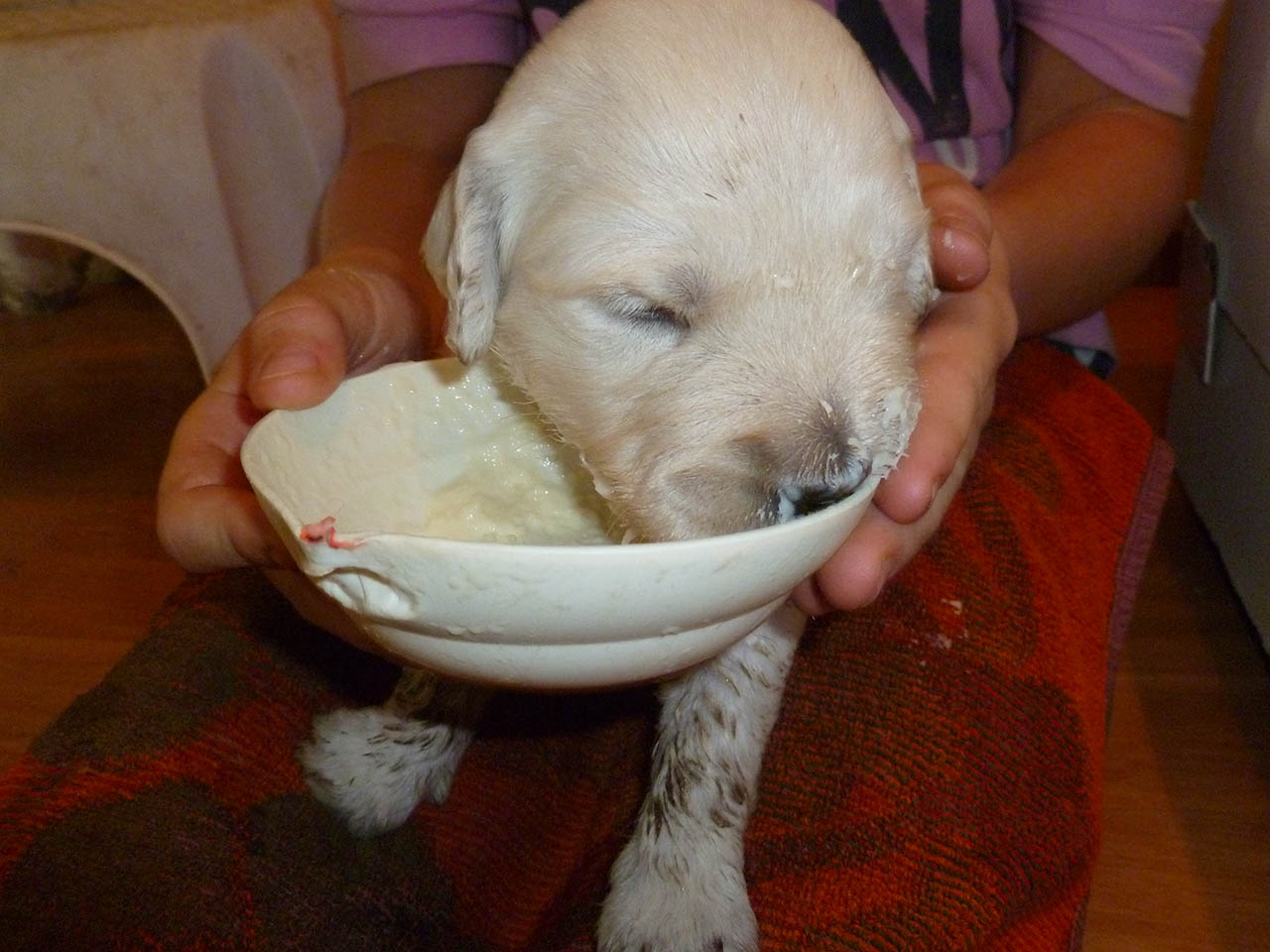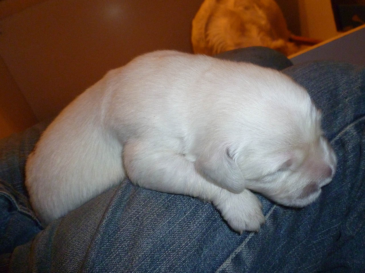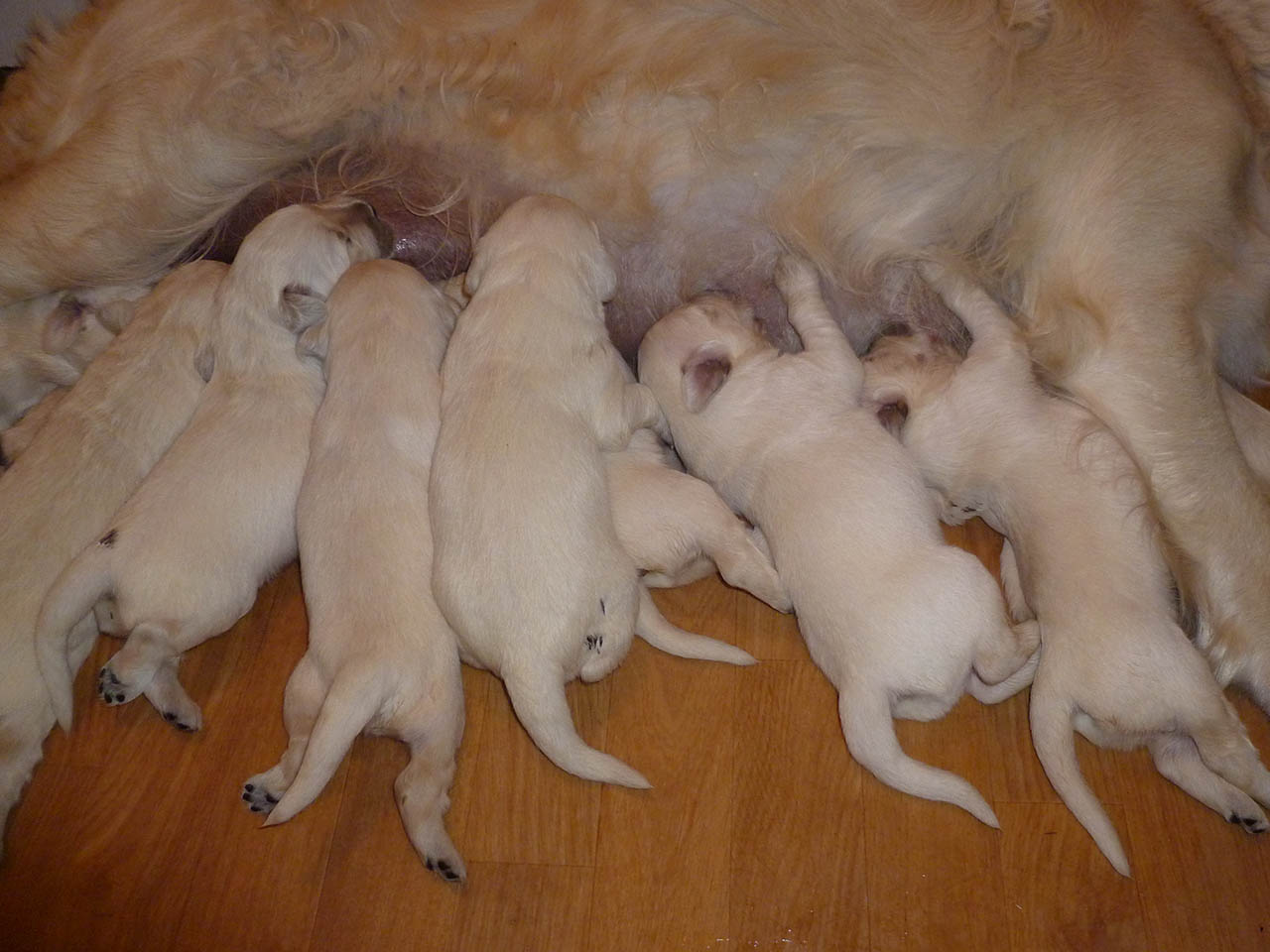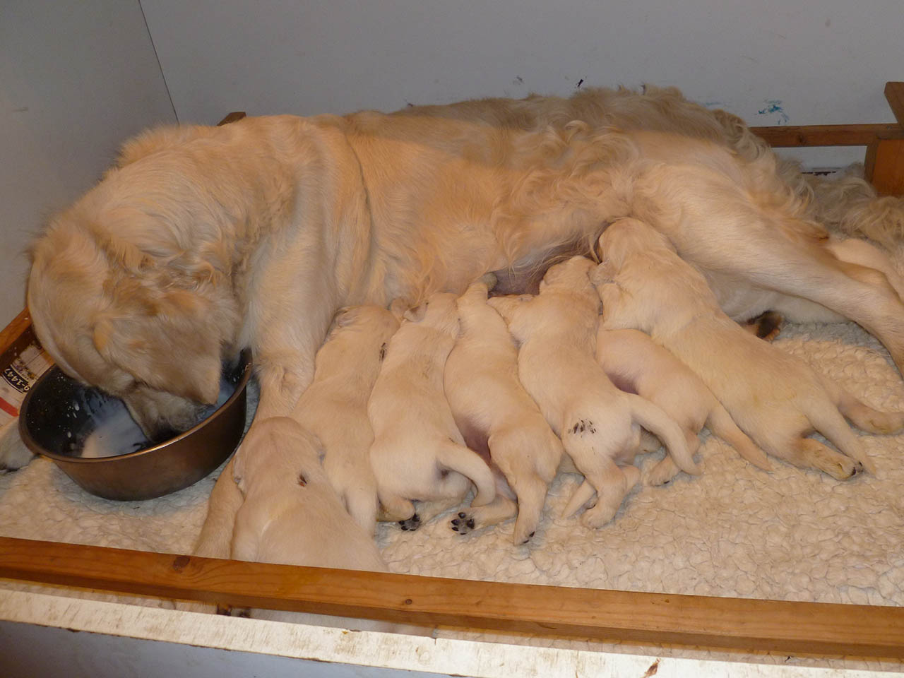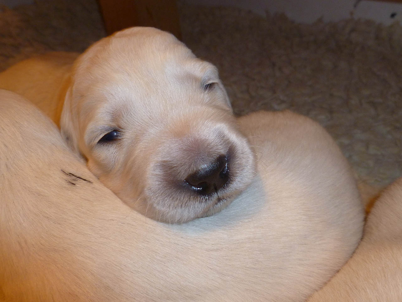 De eerste foto's van de pups, ze zijn net een dag oud.