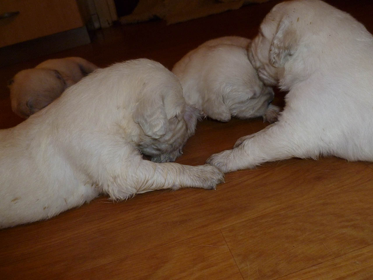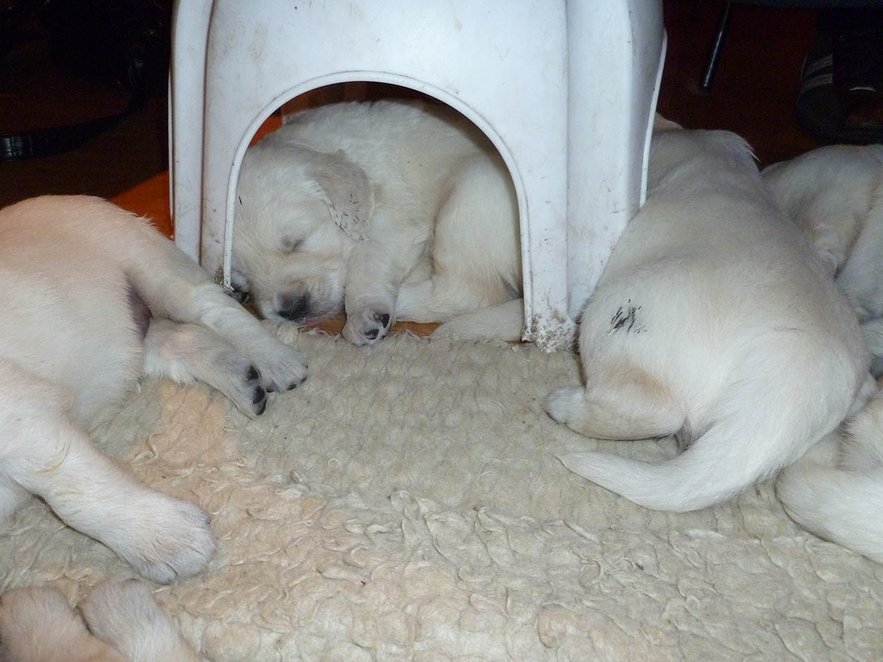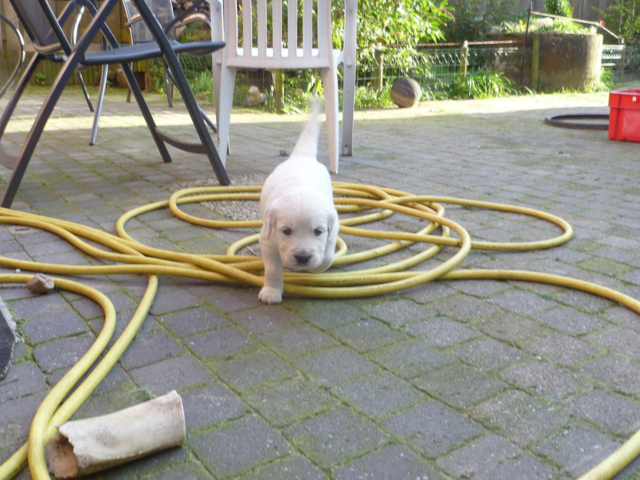 De pups zijn nu 3 ½ week oud en gaan steeds meer ontdekken.