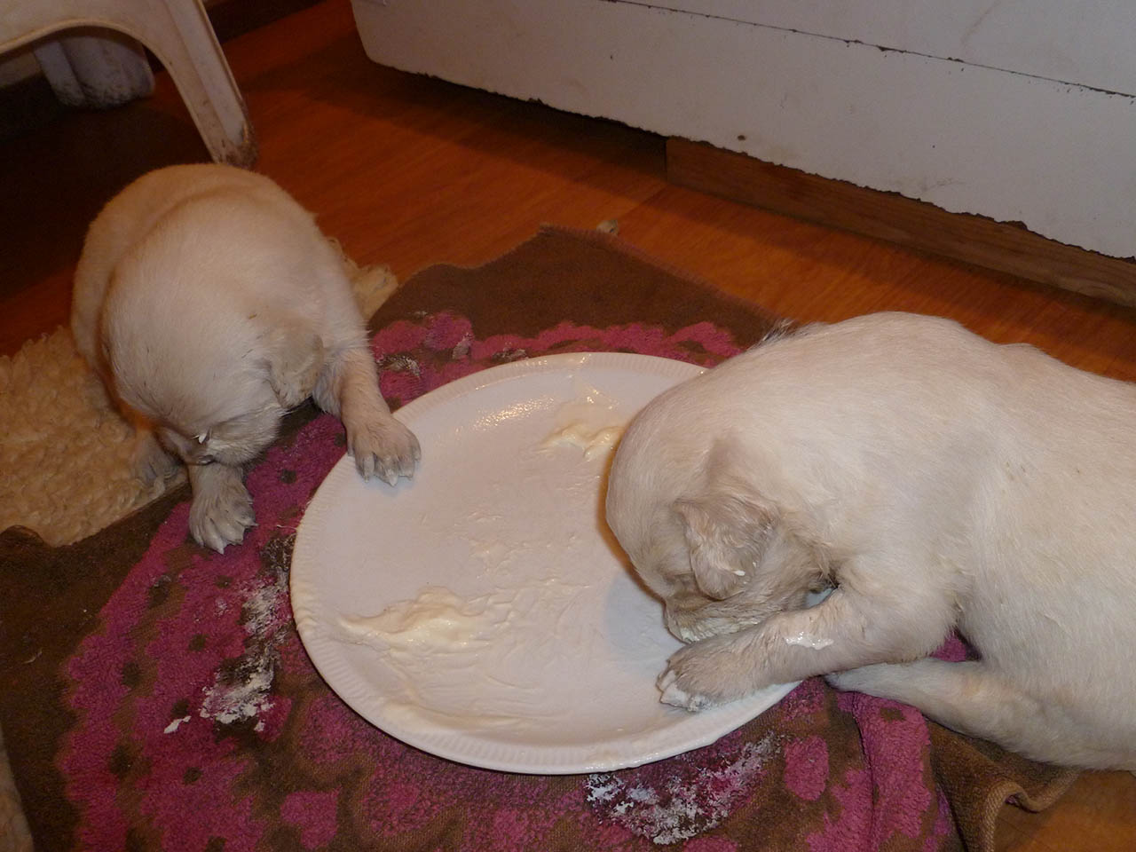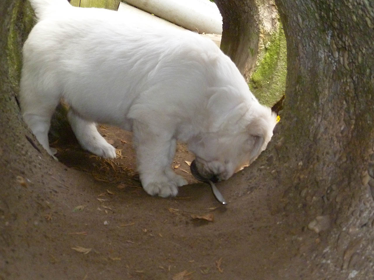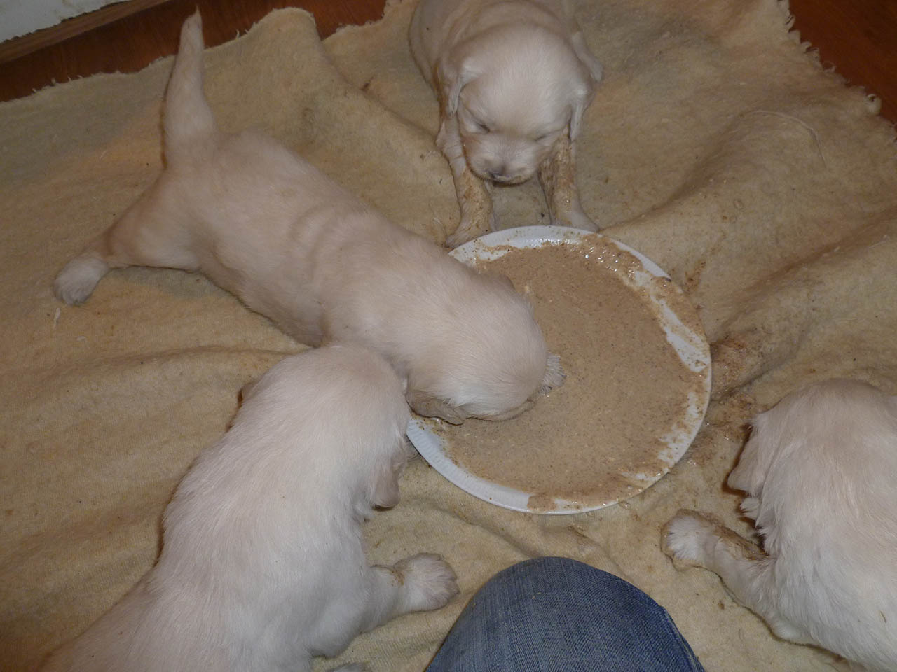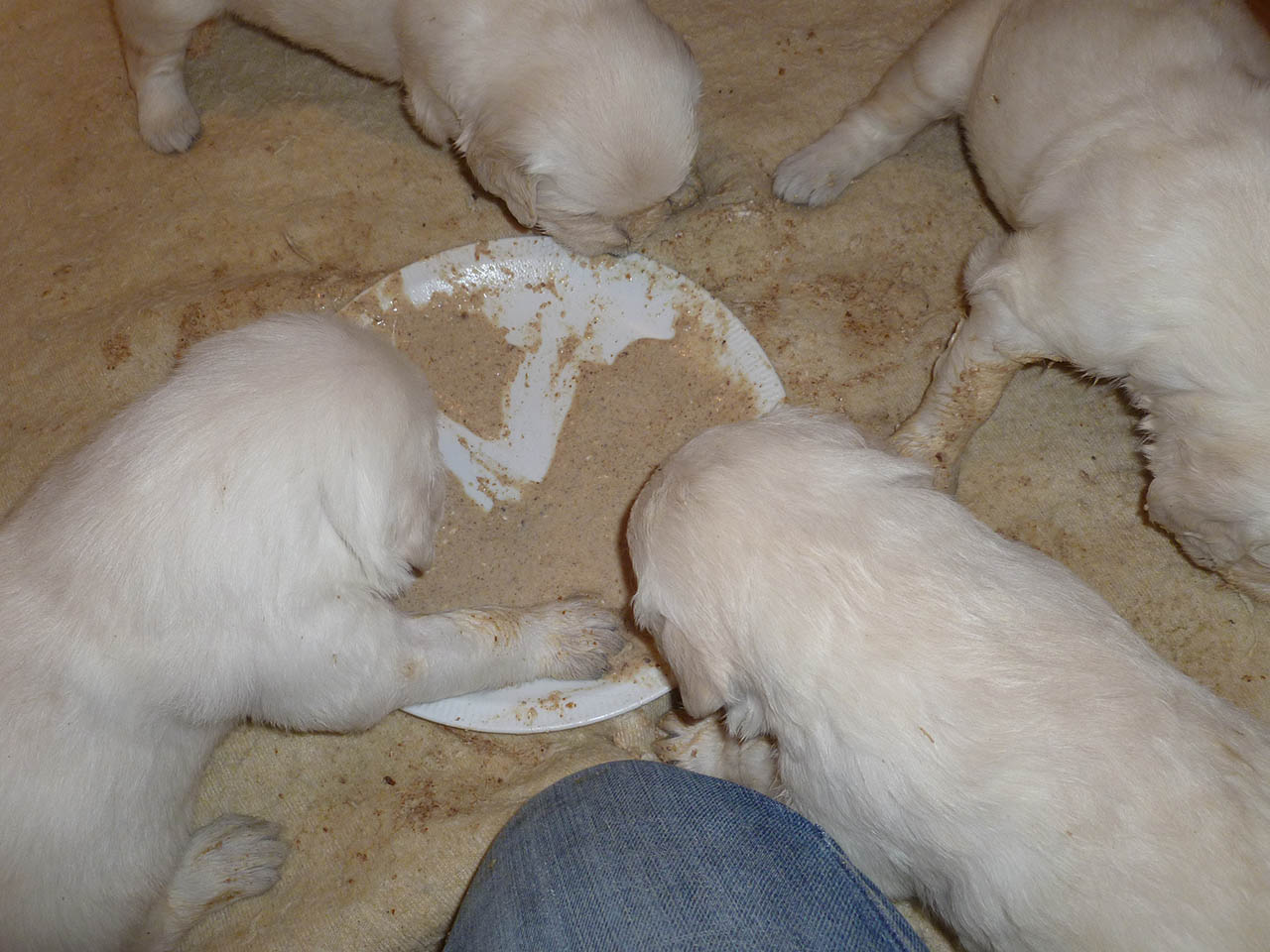 De pups zijn nu 3 ½ week oud en gaan steeds meer ontdekken.