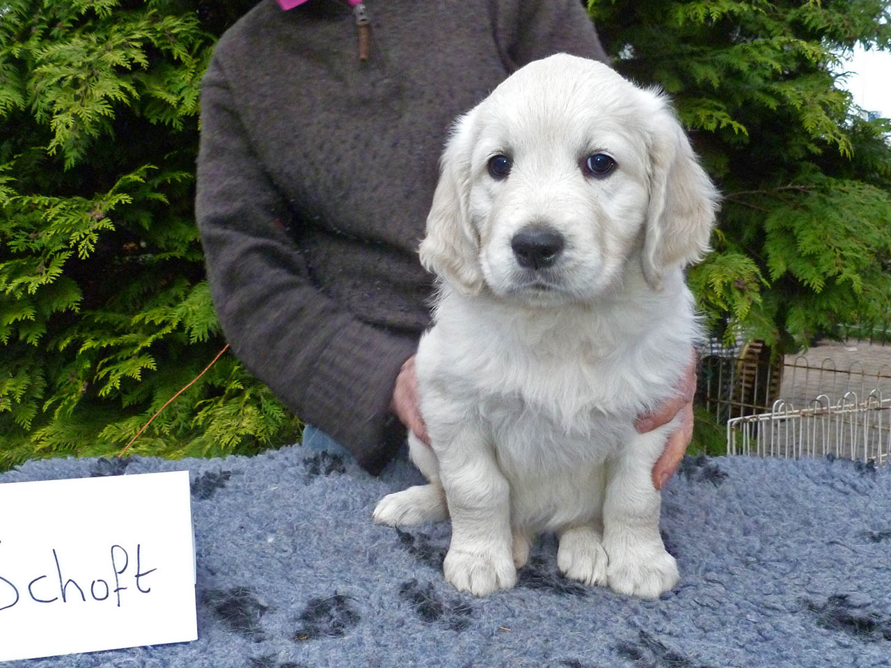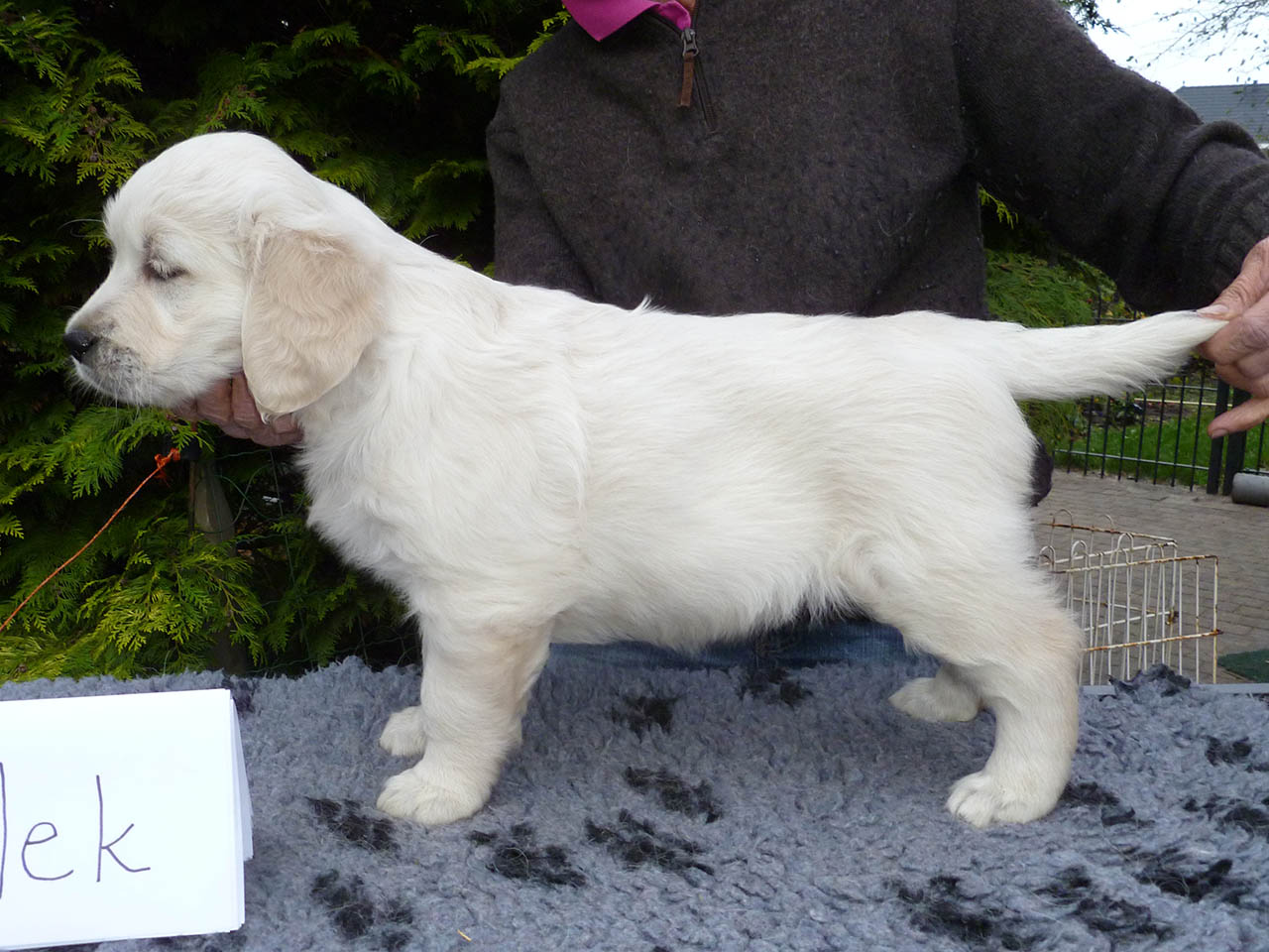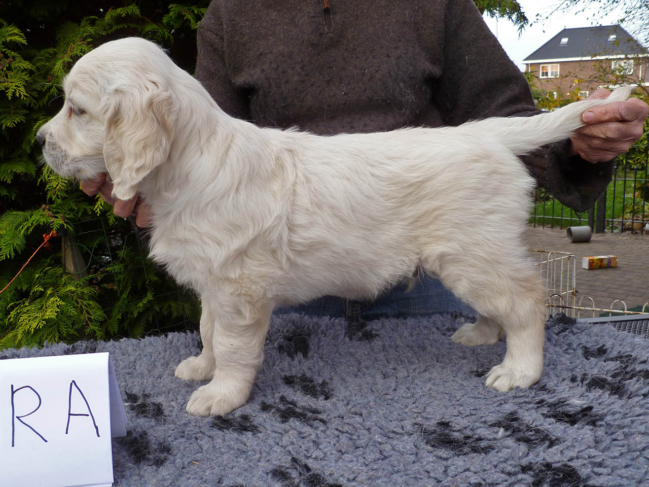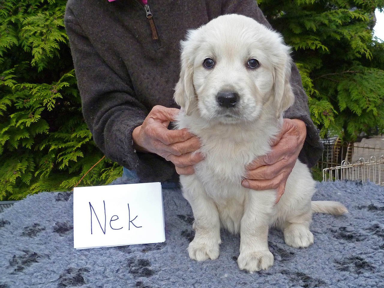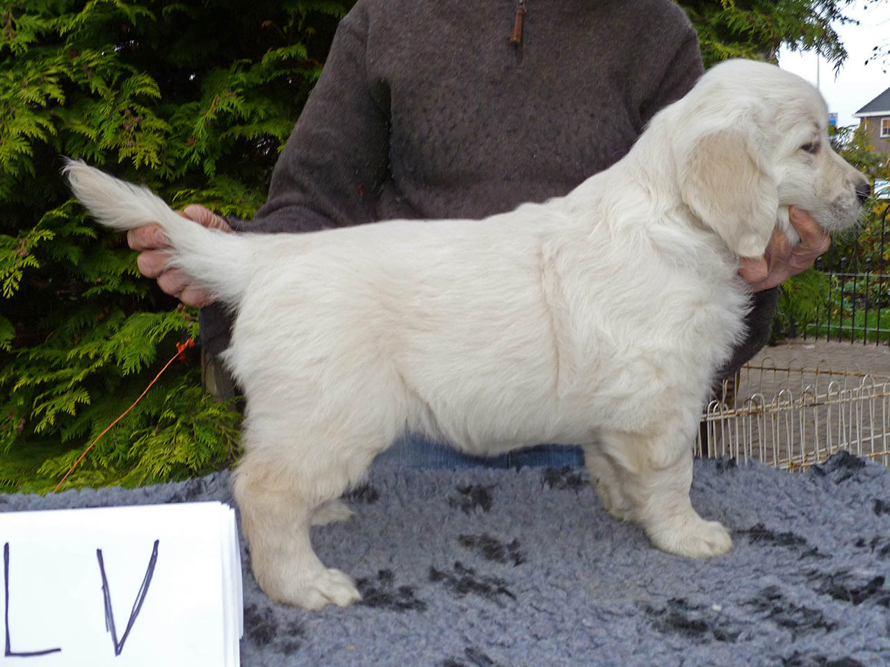 De pups zijn nu ruim 4 week oud; ze lopen steeds meer buiten en krijgen veel bezoek.
