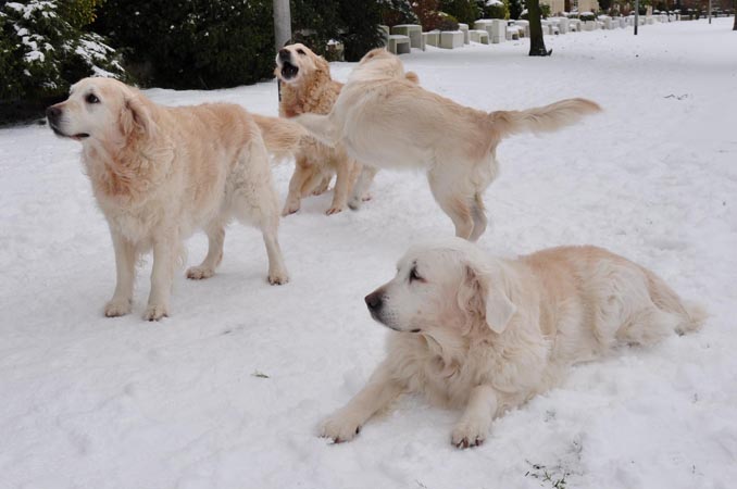 Het unieke kwartet een half jaar later; heerlijk in de sneeuw.